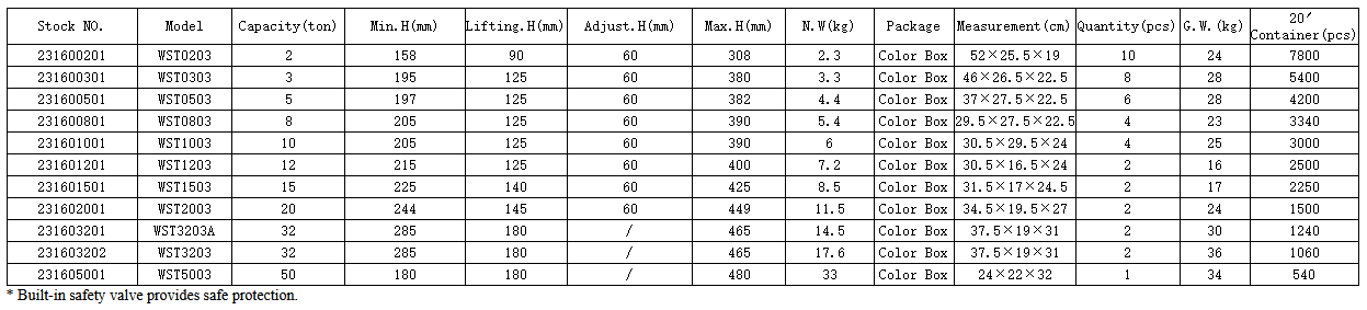 WST Bottle Jack with Safety Valve